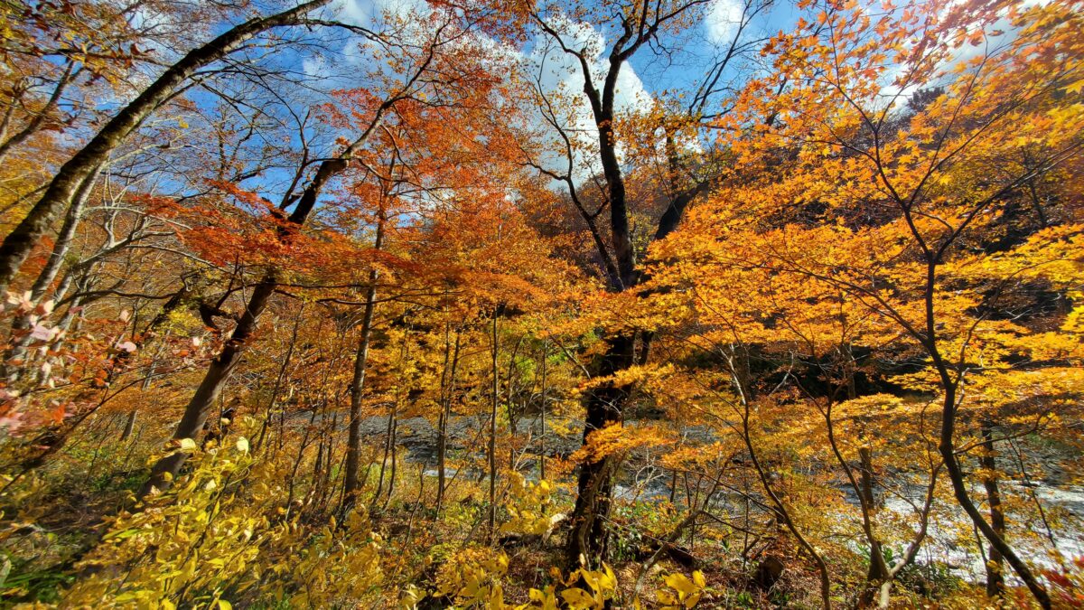 鮮やかな紅葉の中を進むトレッキングは一年の中でも貴重な時間。