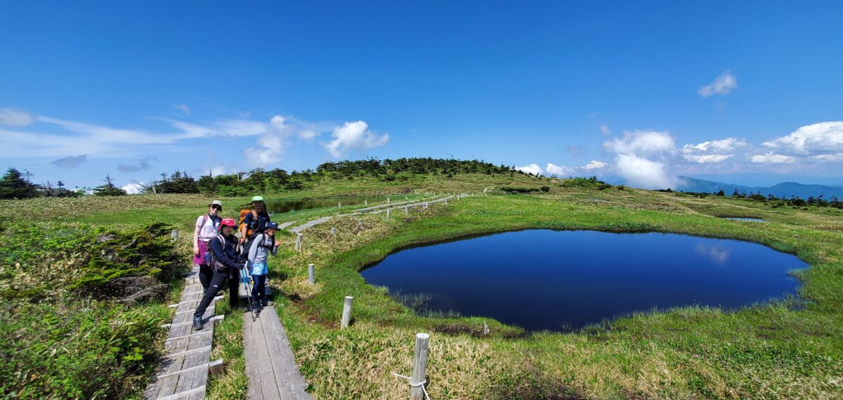 苗場山は日本百名山の1つ。標高2,145m、花の百名山とも呼ばれ、高山植物の宝庫です。 頂上には周囲4kmにわたって大小数百の池塘が広がる高層湿原があり、 登った人にしか味わえない感動があります。
